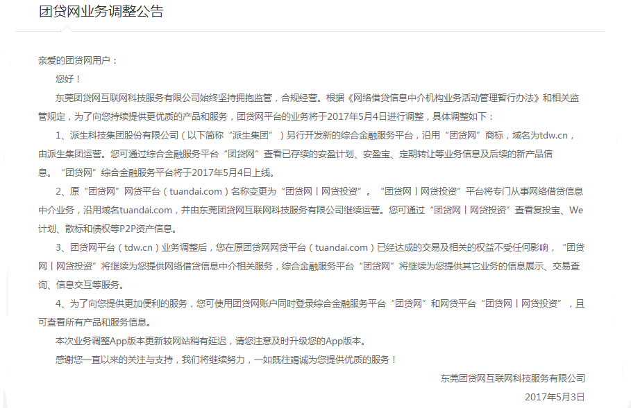 团贷网作为网络借贷信息中介平台,不向出借人或对借款项目提供任何担保或保证。平台展示的参考年回报率等不代表最终实际获得的利息或回报。出借人应当自行承担出借风险,包括可能面临的无法按期收回本息的信用风险,以及可能面临的债权转让不成功时,需按借款合同约定的借款期限继续持有债权直至对应的借款结清的流动性风险。平台不对债权转让完成时效及成功与否做出任何承诺。出借人需根据自身的风险承受能力,独立谨慎作出出借决策。
